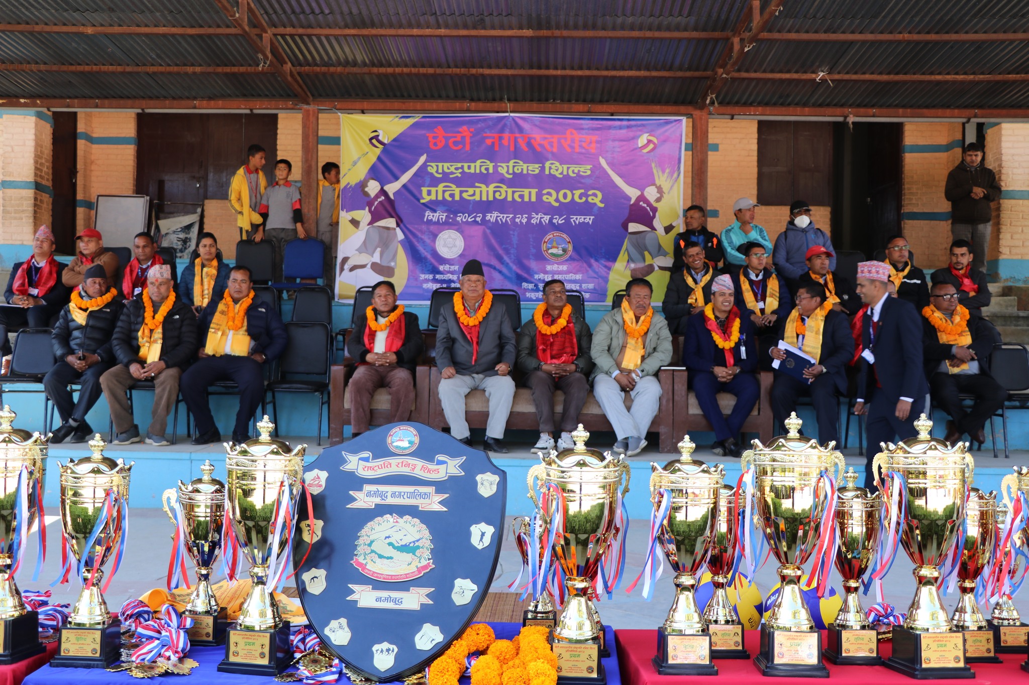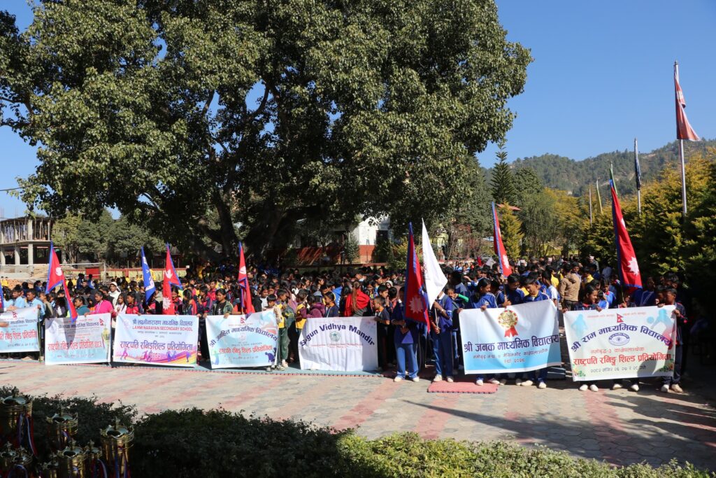काभ्रे जिल्लाको नमोबुद्ध नगरपालिका–४ मा अवस्थित श्री जनक माध्यामिक विद्यालयमा छैटौँ नगरस्तरीय राष्ट्रपति रनिङ शिल्ड प्रतियोगिता–२०८२ सुरु भएको छ । आज नमोबुद्ध नगरपालिकाका नगर प्रमुख कुन्साङ लामाको प्रमुख आतिथ्यता एवम् ४ नम्बर वडाका वडा अध्यक्ष अर्जुन बहादुर कार्कीको सभाध्यक्षतामा प्रतियोगिताको उद्घाटन गरीएको हो । नगरपालिकाको शिक्षा युवा तथा खेलकुद शाखाको आयोजना तथा जनक माध्यामिक विद्यालयको संयोजनमा छैटौँ नगरस्तरीय राष्ट्रपति रनिङ शिल्ड प्रतियोगिता सुरु भएको हो ।